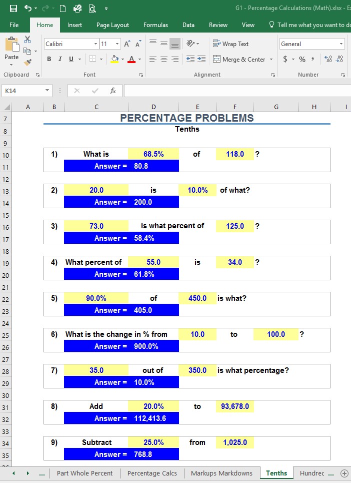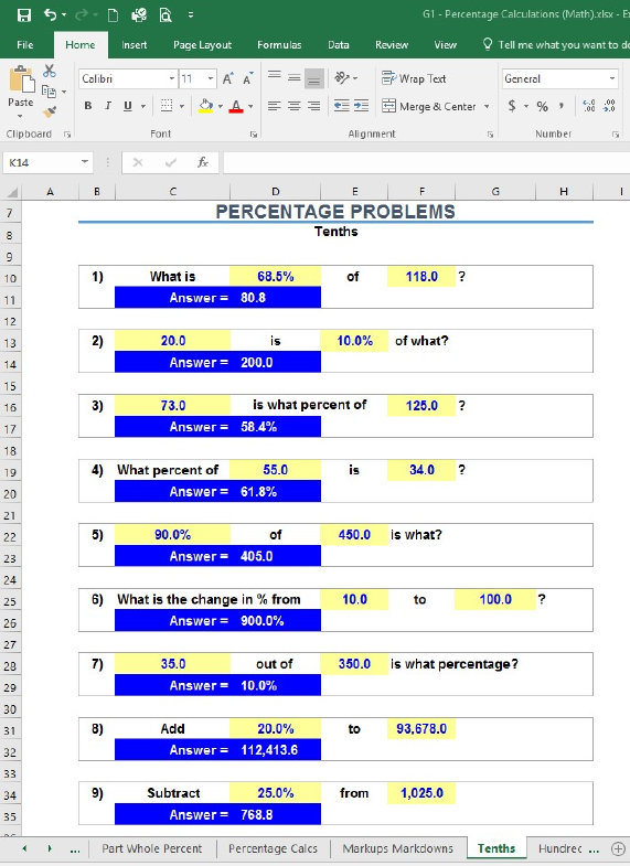 TOPIC: Percentage, Interpolation, Prorate, inch/feet, etc.